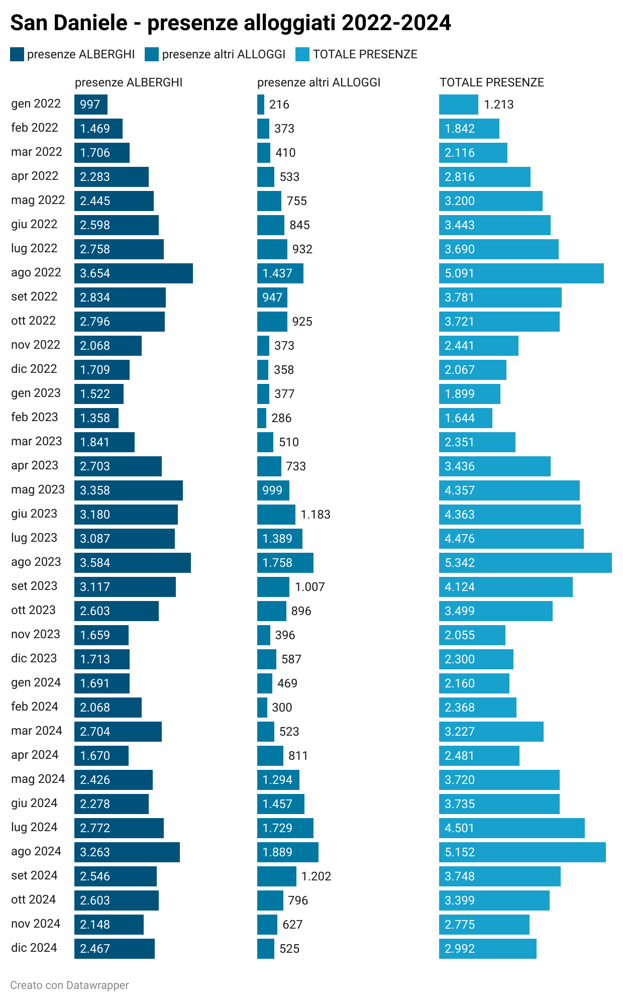 presenze di visitatori alloggiati nel periodo 2022-2024